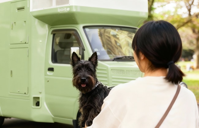 車両の中にペットのトリミング設備を備え付けた移動式のトリミングサロンで、